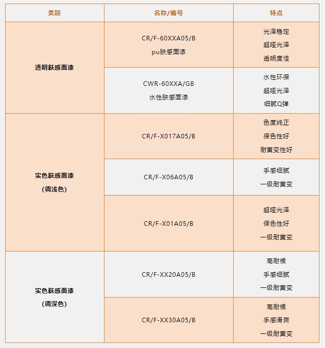 膚感漆可適配多種常見家具板材。其工藝主要通過在一般底漆上噴涂一道膚感面漆,不直接接觸基材。只要底漆與基材通過附著力測試,即可廣泛應用于各類板材表面。