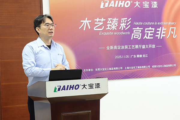 11月5日,大寶漆順德·龍江全新高定涂裝工藝展廳盛大啟幕?;顒右浴澳舅囌椴?高定非凡”為主題,大寶化工直銷事業部總經理張正賢、業務一部副總經理周志鴻、業務一部營銷總監葉小兵以及順德辦全體業務與工程服務人員等,共同見證了這一服務升級的新里程碑。