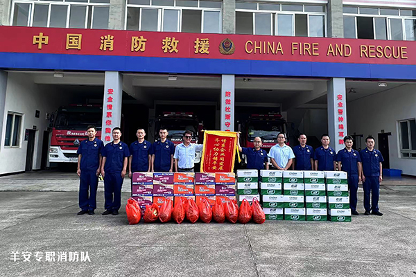 在“八一”建軍節(jié)來臨之際,成都大寶化工制品有限公司管理部副理賴俊良、副課長段亞波和楊路等一行人,帶著誠摯的問候和深深的敬意,來到邛崍市消防救援大隊(duì)及羊安專職消防隊(duì),慰問奮戰(zhàn)在火海前線、保衛(wèi)一方平安的消防官兵,為他們送上夏日的清涼。